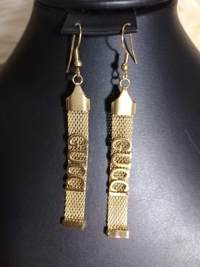 ✨ Craquez pour ces magnifiques boucles d’oreilles longues  GUCCI en acier inoxydable doré, parfaites pour sublimer votre allure.