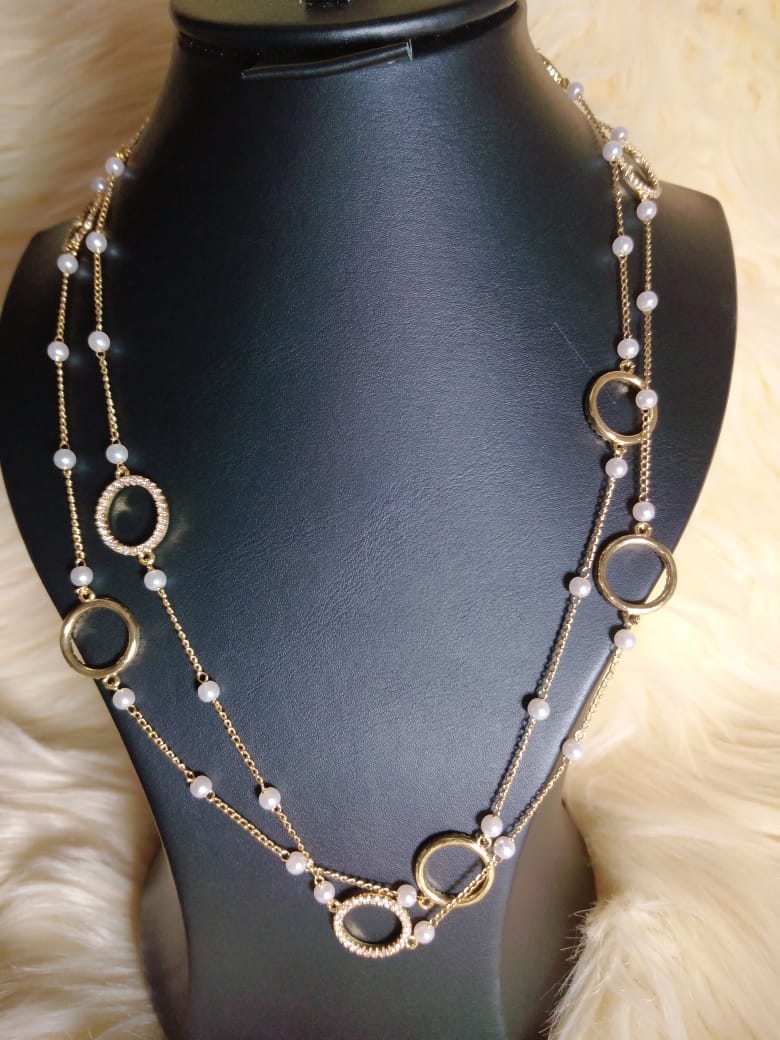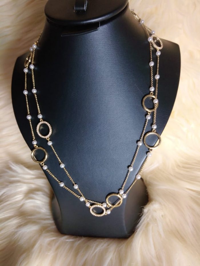 Laissez-vous séduire par ce somptueux collier en plaqué or, une pièce à la fois raffinée et intemporelle. Son design délicat, agrémenté de perles élégantes et de cercles dorés scintillants, en fait l’accessoire parfait pour illuminer votre tenue en toute occasion.